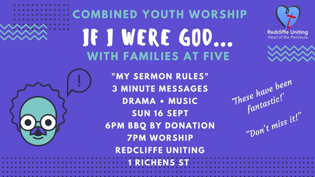 We had the Quizworx puppets on Sunday, but we can't put their show up for copyright reasons, so instead, here is the first of the three '3 minute' sermons from Sunday night. The young people were given the topic - "If I was God I would..." This is Armaan from North Lakes.